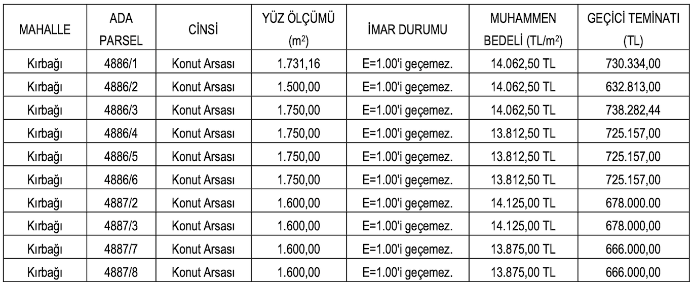 12. Geçici teminat her arsa için ayrı ayrı ve tutarında yatırılacaktır.