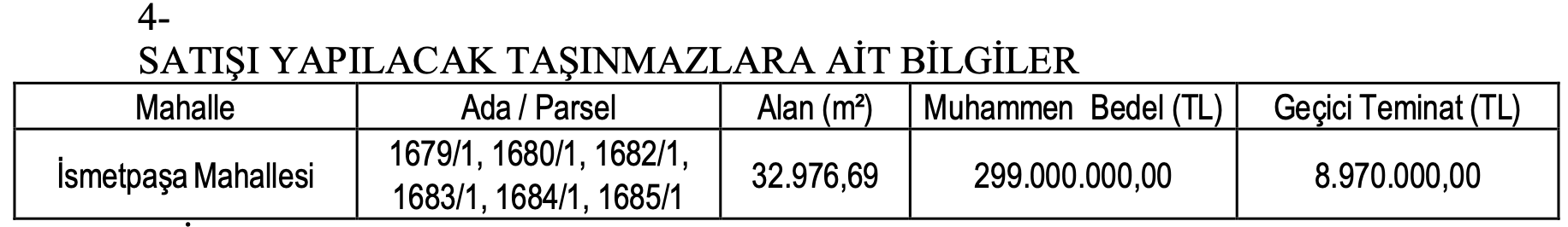 Çorum Sungurlu’da yer alan arsa 32 bin 976,69 metrekare alana sahip. Muhammen bedeli 299 milyon TL olarak açıklanan arsanın geçici teminat bedeli ise 8 milyon 970 bin TL olarak açıklandı.