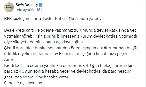 BES’e kredi kartı ile ödeme yapmanız durumunda devlet katkısında geç yatmalar görebilirsiniz bunu bilmezseniz kurum devlet katkısı yatırmadı diye şikayet edersiniz bunu açıklayacağım .