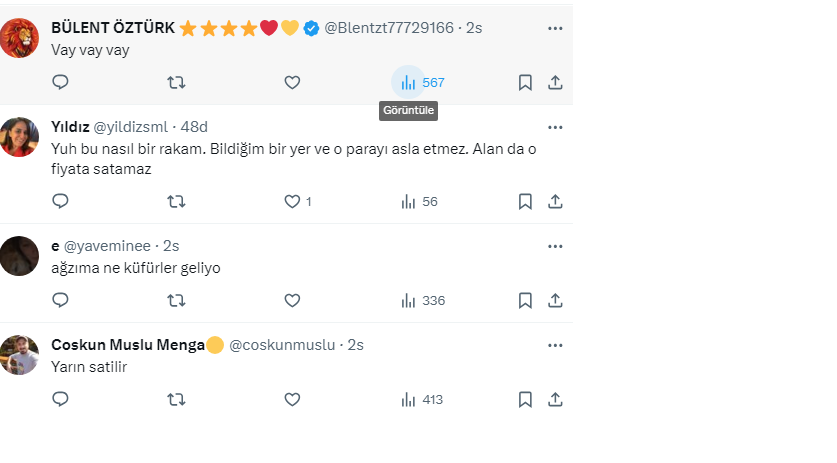 Yıldız @yildizsml: ''Yuh bu nasıl bir rakam. Bildiğim bir yer ve o parayı asla etmez. Alan da o fiyata satamaz''