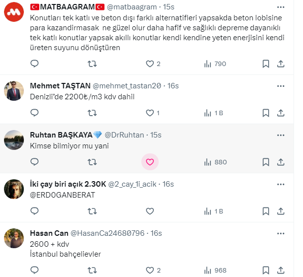 Mehmet TAŞTAN@mehmet_tastan20: ''Denizli’de 2200₺/m3 kdv dahil''