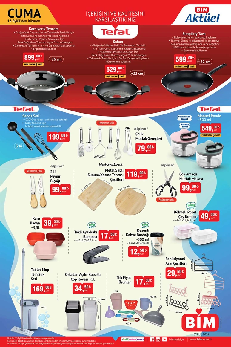 BİM 13 Eylül 2024 aktüel ürünler kataloğunu paylaştı. BİM’de haftaya cuma günü, birçok indirimli ürün raflarda yerini alacak.