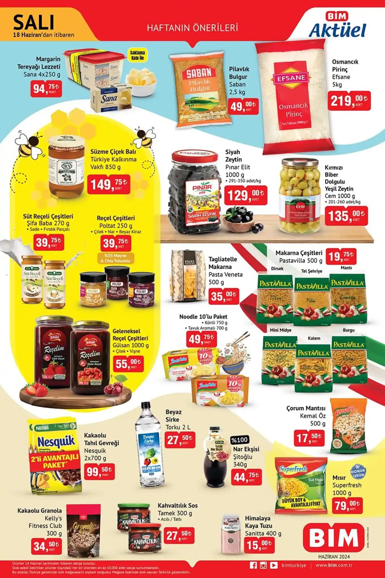 BİM 18 Haziran 2024 aktüel ürünler kataloğunu internet üzerinden paylaştı. Bayram yaklaşırken BİM'de birçok üründe indirim fırsatı var. Bu salı BİM'de gıda ürünleri indirimli olarak raflarda yerini alacak.