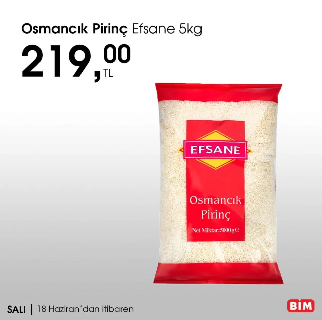 Osmancık Pirinç Efsane 219 Türk Lirası.