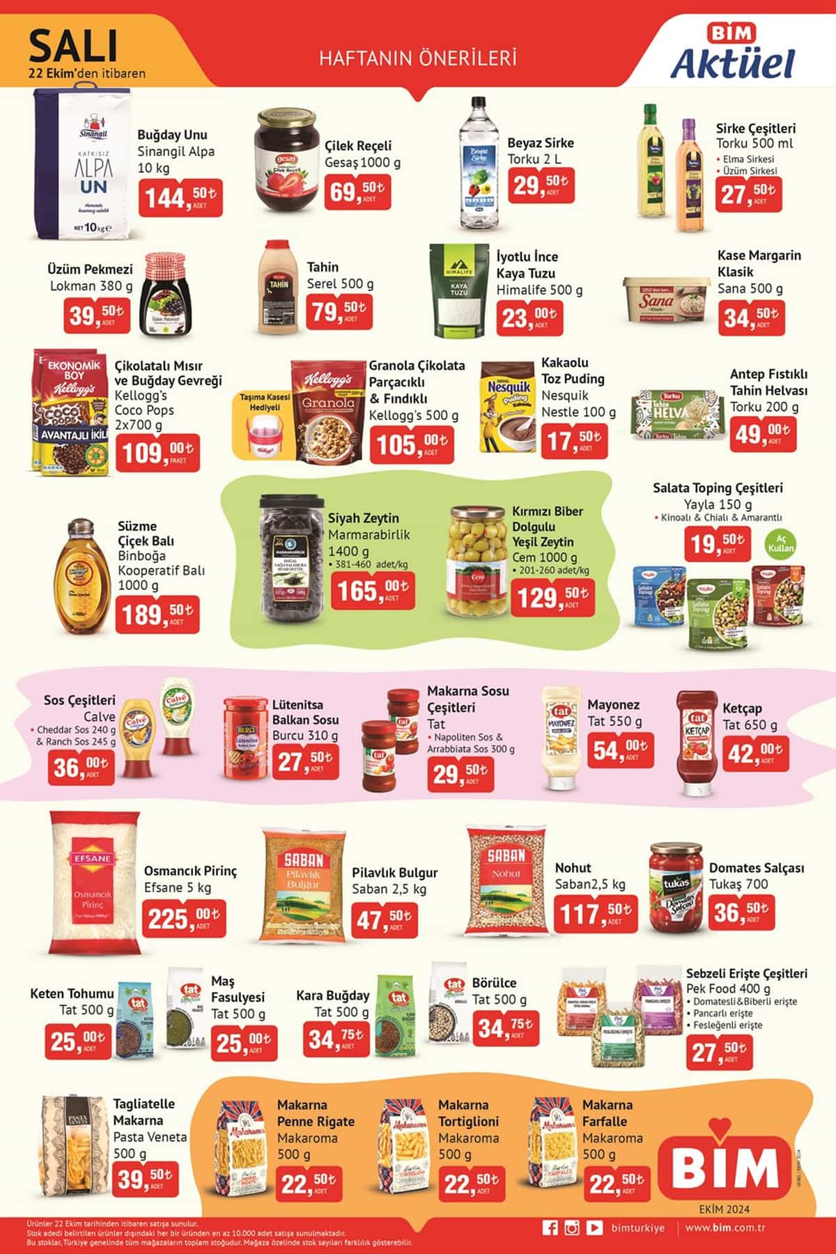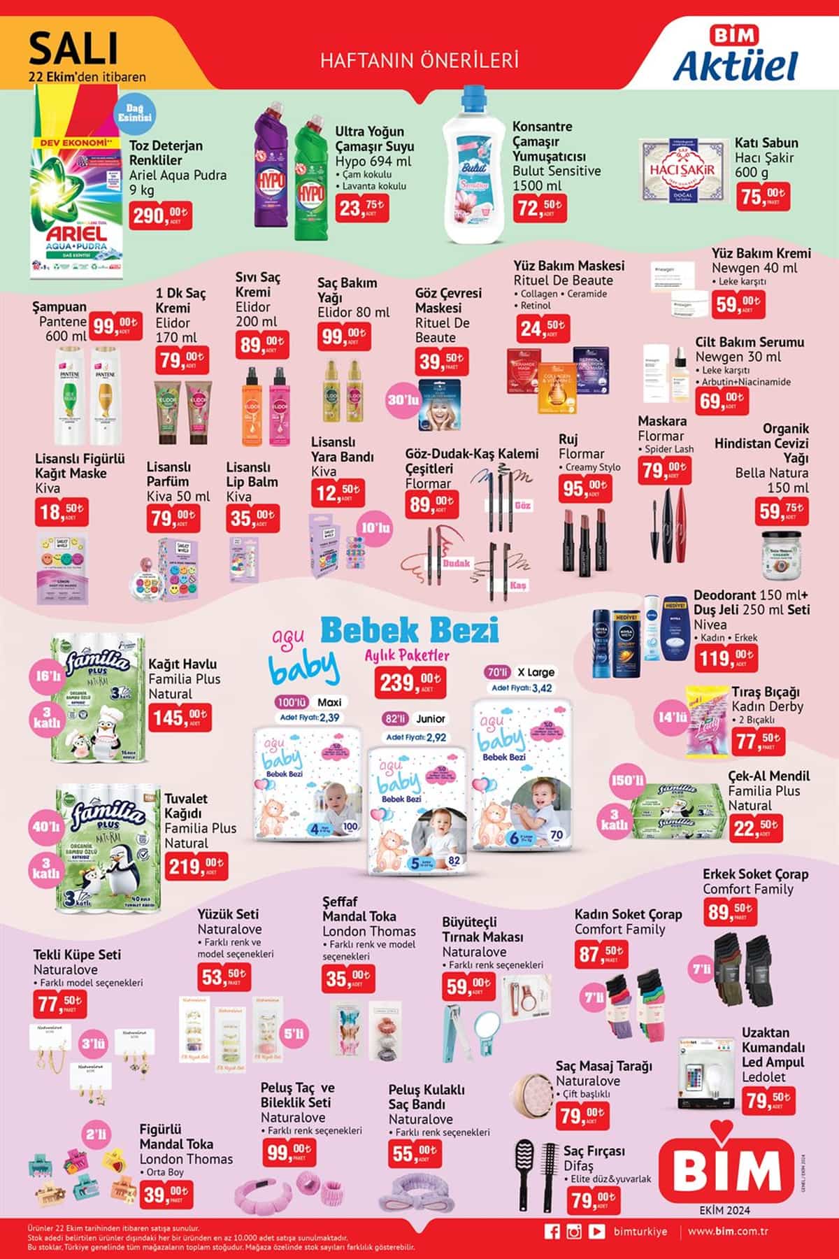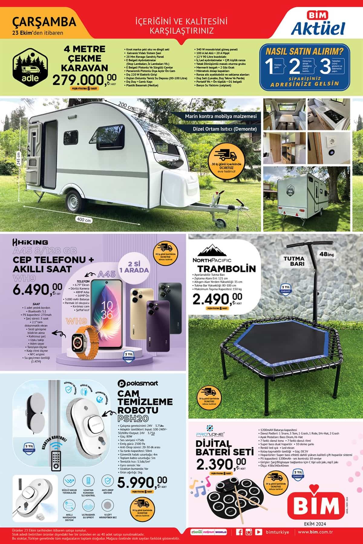 BİM, 23-29 Ekim 2024 günü itibarı ile yeni aktüel ürünler kataloğunu internet üzerinden paylaştı. Kişisel bakım, temizlik ve hijyen, kahvaltılık, atıştırmalıklar, dondurulmuş gıdalar, soğuk ve sıcak içecekler gibi birçok üründe cazip kampanyalar var.