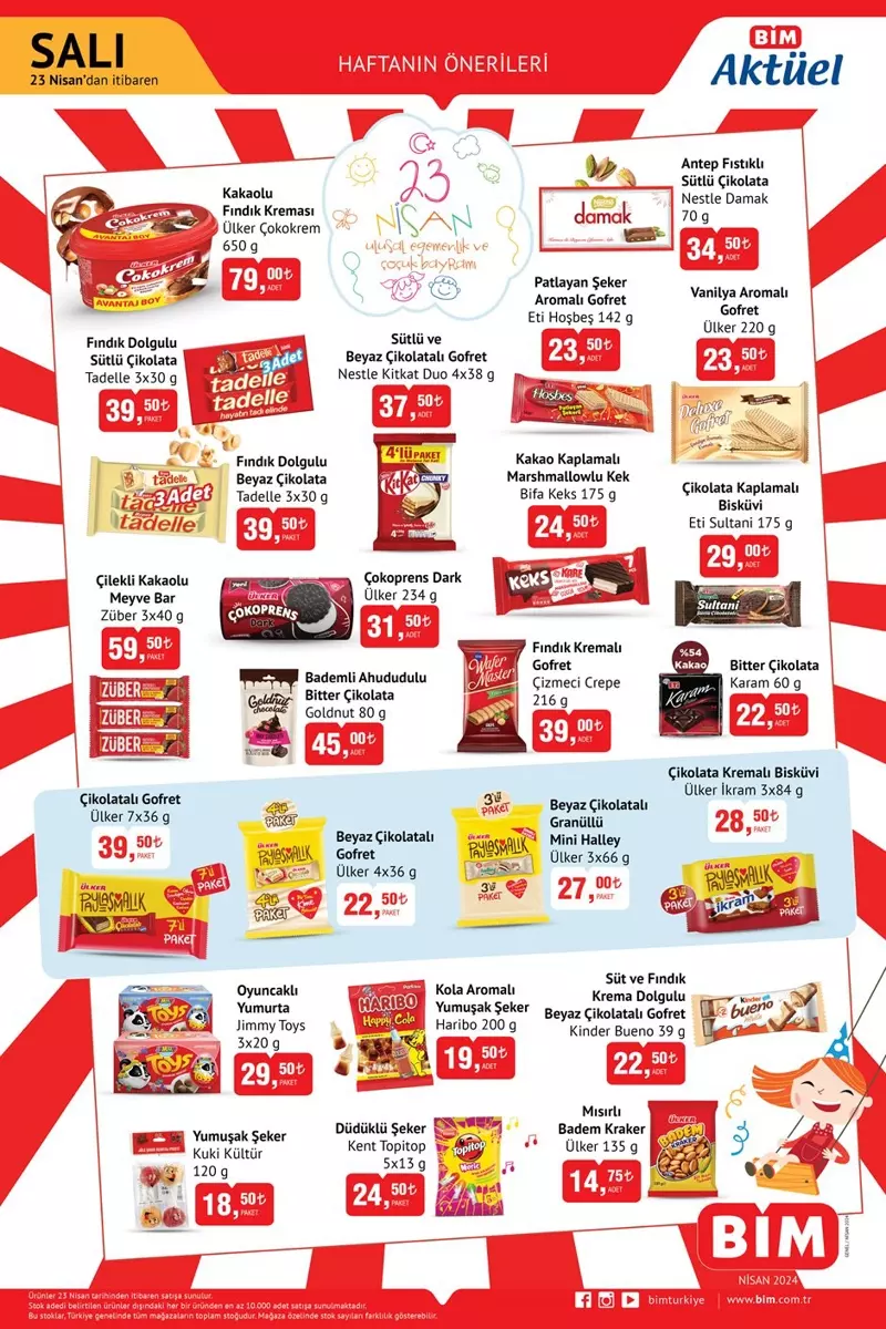 BİM 23 Nisan 2024 aktüel ürünler kataloğunu internet üzerinden paylaştı. BİM'de Kişisel Bakım ürünlerinden, pasta malzemelerine, gıdadan bir çok seçili ürüne kadar indirim yapılacak.