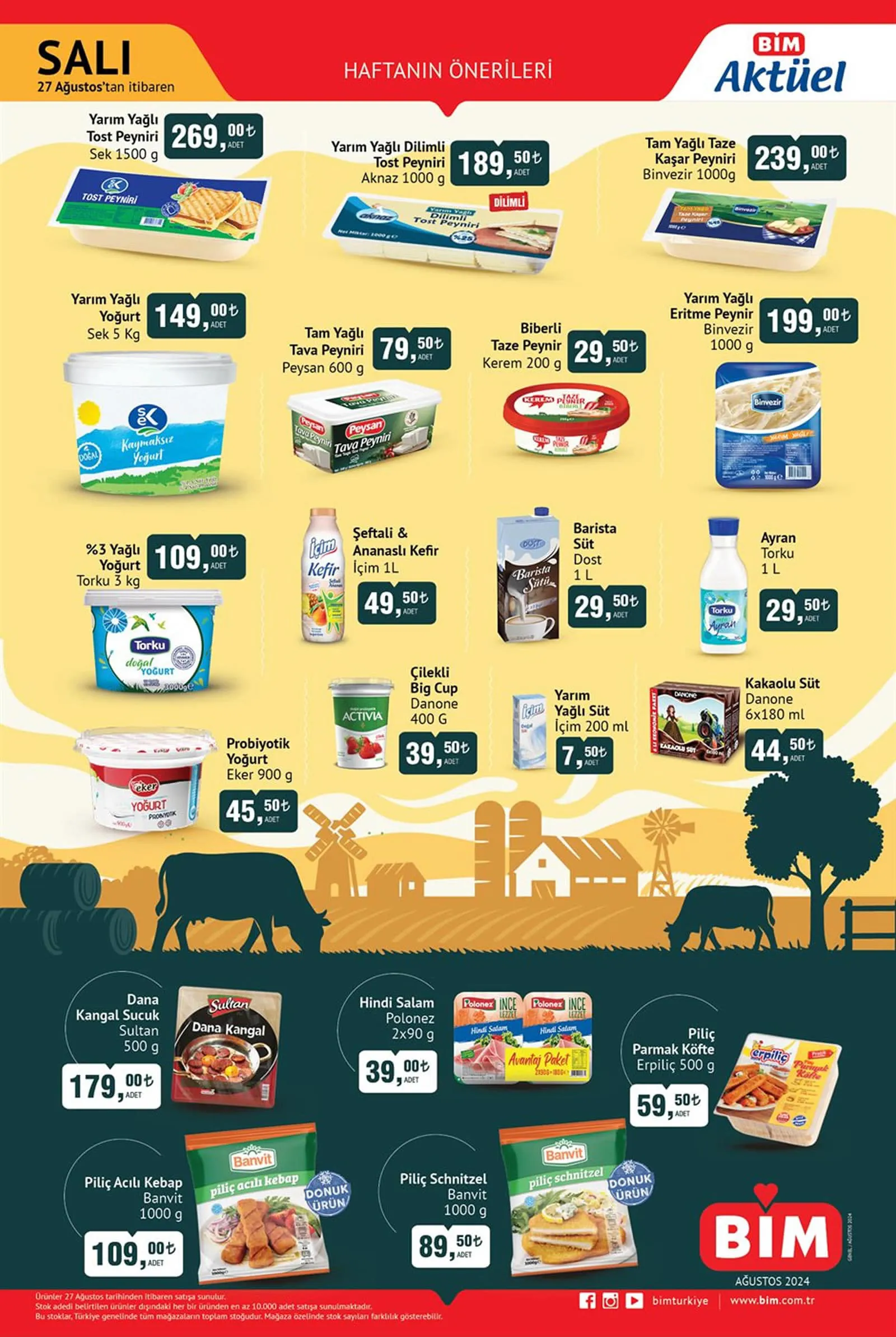 BİM, 27 Ağustos ile 3 Eylül 2024 tarihleri arasında geçerli olacak Ağustos ayının son kataloğunu açıkladı. Onlarca fırsat ürünlerinin yer aldığı BİM'de haftaya Bingo toz deterjan 10 kg 299 TL, ve Sleepy bebek bezi 199 TL'den satılacak. İşte BİM 27 Ağustos 2024 Aktüel Ürünler Kataloğu...