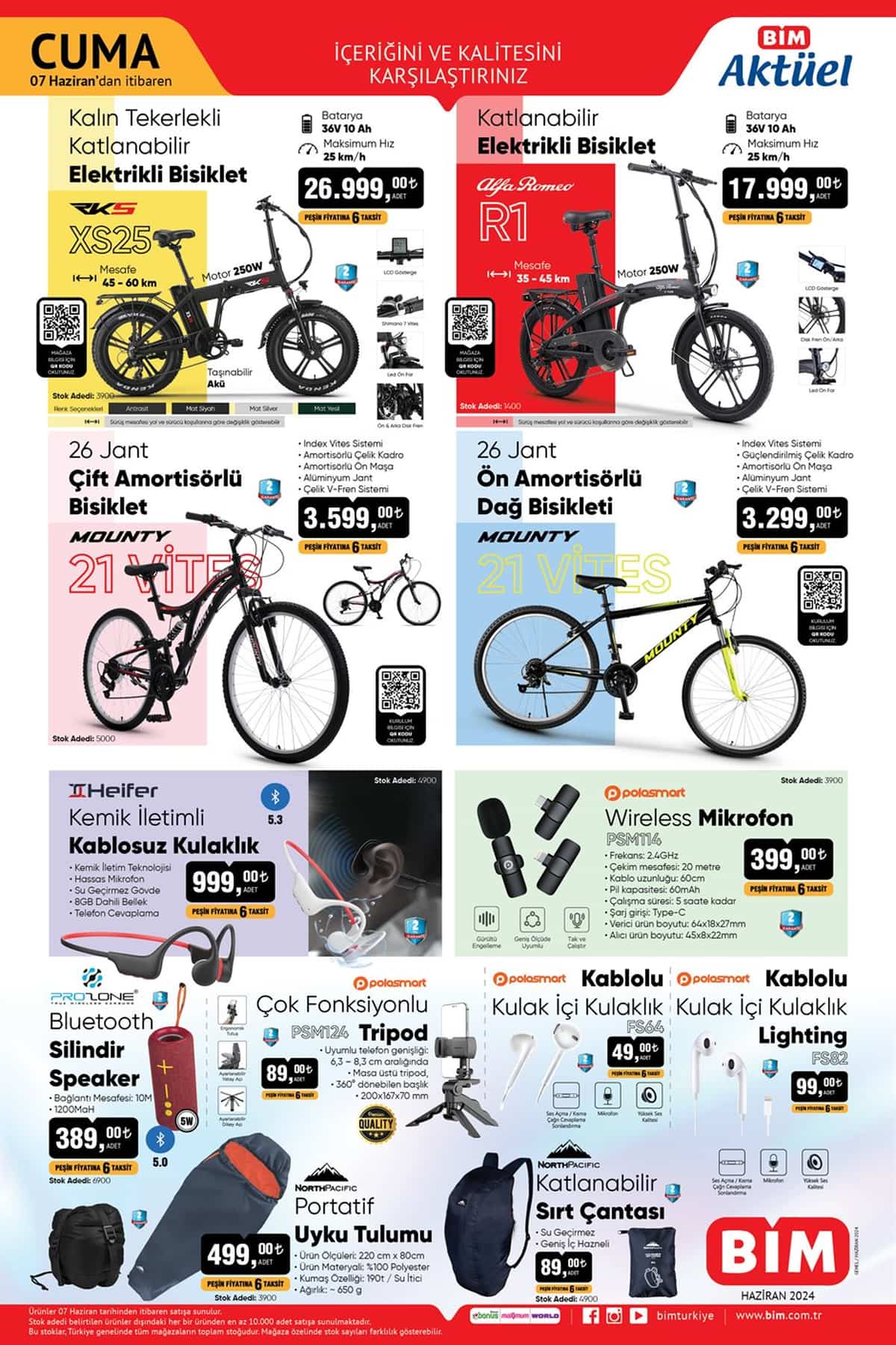 BİM 7 Haziran 2024 aktüel ürünler kataloğunu yayımladı! Bu cuma BİM'e elektrikli ve elektriksiz bisikletler geliyor...