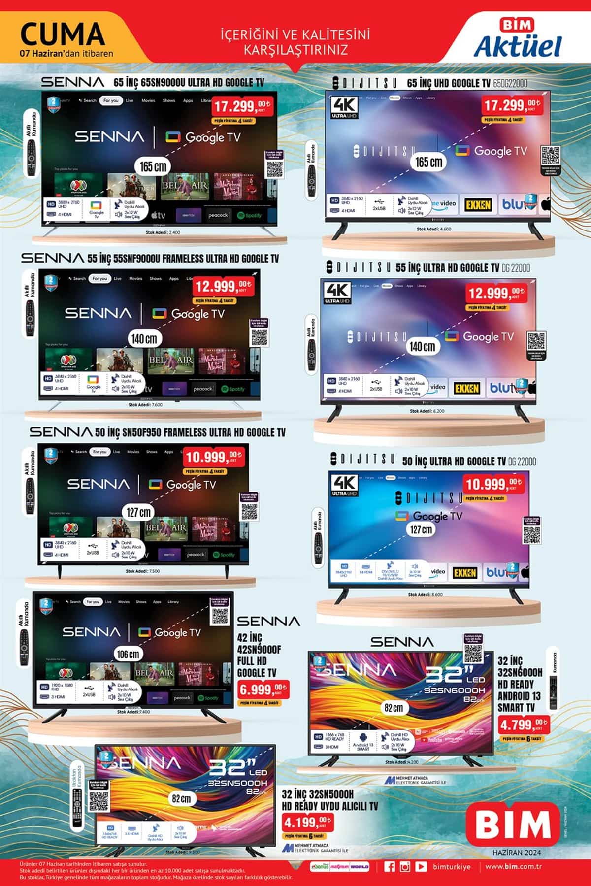 - Dijitsu 55″ Ultra HD Google TV: 12,999 Türk Lirası.