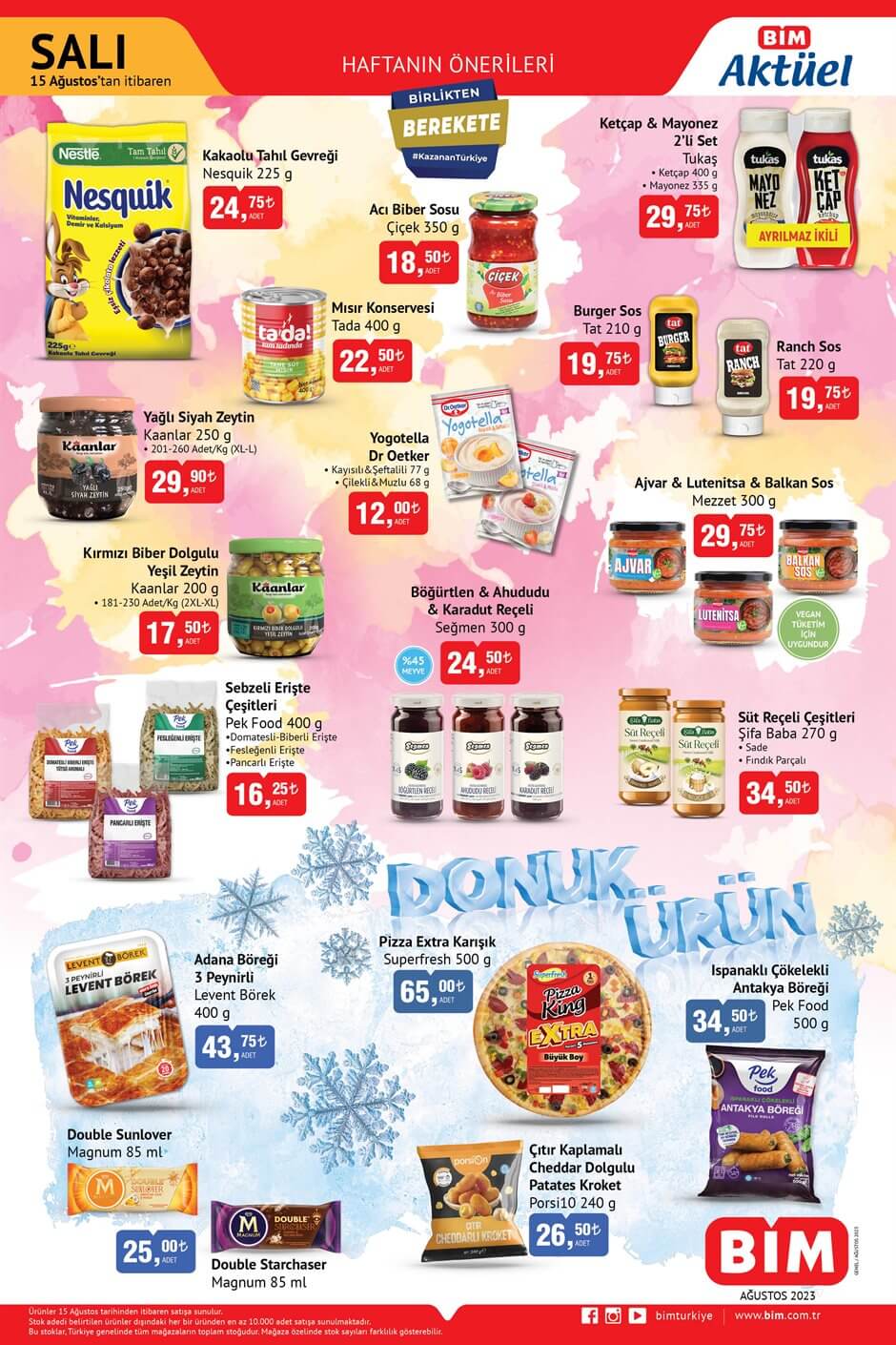BİM2in 15 Ağustos 2023 tarihli Birlikten Berekete aktüel ürünleri yayımlandı. Bu kapsamda BİM'de temel gıda ürünleri kampanyaya dahil edildi. BİM kataloğunda, 1,5 kg tost peynir 169 TL'ye, 3'lü labne 49 TL'ye düştü. İşte diğer indirimli ürünler ve fiyat listesi...