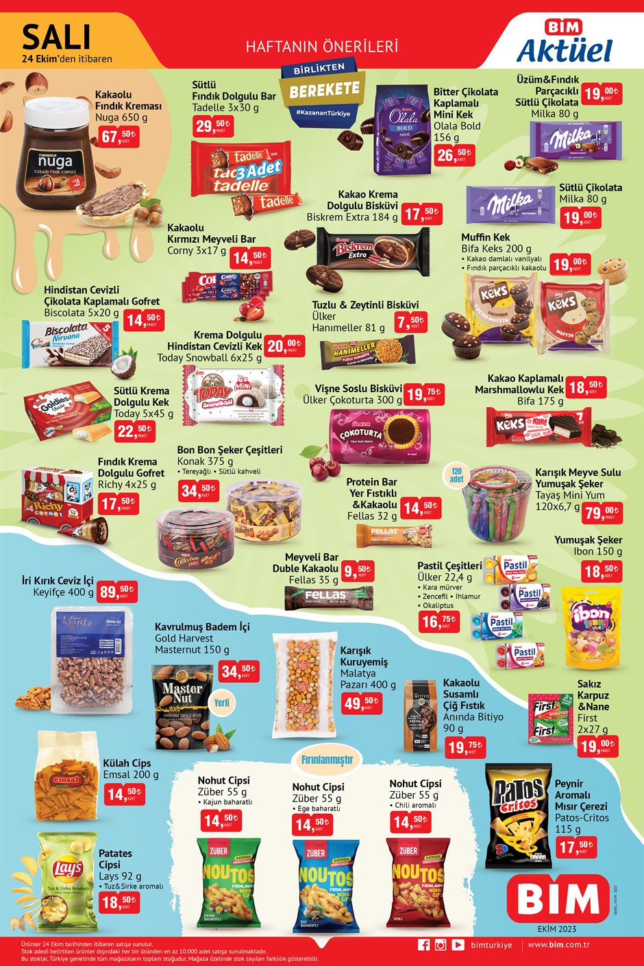 BİM indirimli aktüel ürünler kataloğunu yayımladı. BİM tarafından paylaşılan 24 Ekim 2023 tarihli aktüel ürünler kataloğundaki ürünler belli oldu. Bu kapsamda BİM'de Binvezir Kaşar Peyniri, Efor Platinum Siyah Çay, Efsane Un, Nuga Kakaolu Fındık Kreması ve Biryağ Ayçiçek Yağı satışa çıkarılacak. Peki, BİM'de bu aktüel ürünlerin fiyatı ne kadar kaç TL? İşte detaylar...