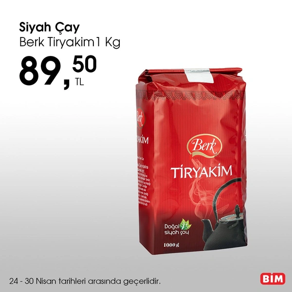 1 kg Berk Tiryakim Siyah Çay 89.50 Türk Lirası.