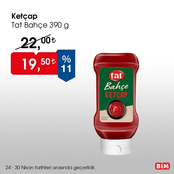Tat Bahçe Ketçap 19.50 Türk Lirası.