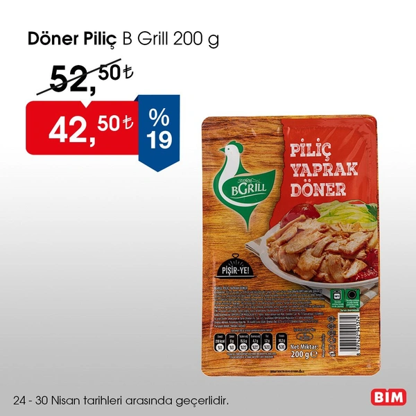 200 gr B Grill Döner Piliç 42.50 Türk Lirası.