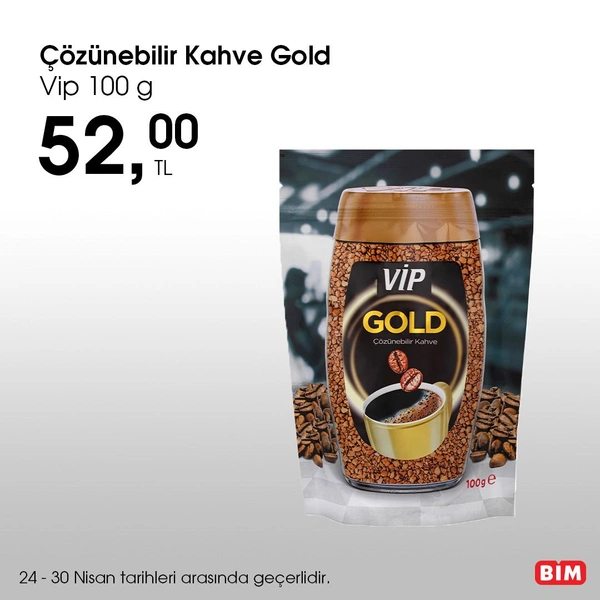 100 gr VIP Çözünebilir Kahve Gold 52 Türk Lirası.