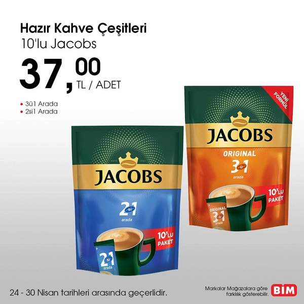 10'lu Jacobs Hazır Kahve Çeşitleri 37 Türk Lirası.