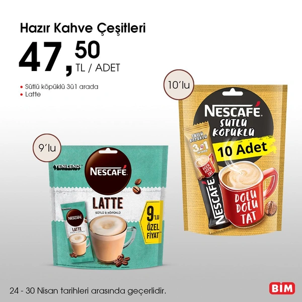 10'lu Nescafe Hazır Kahve Çeşitleri 47.50 Türk Lirası.