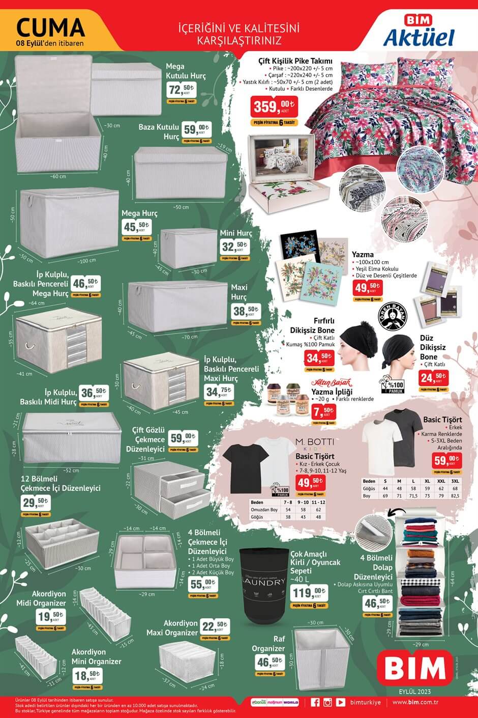 BİM'in 8 Eylül aktüel ürünler kataloğu yayımlandı. Her hafta BİM tarafından yayımlanan aktüel ürünler kataloğu tüketiciler tarafından ilgiyle takip ediliyor. Bu hafta BİM aktüel ürünler kataloğu 8 Eylül itibarıyla satışa çıkarılacak. BİM'de Fakir 4 parça çeyiz paketi 2 bin 799 TL'ye, 7 parça çerezlik seti 125 TL'ye düştü. İşte BİM aktüel ürünler kataloğu fiyat listesi...