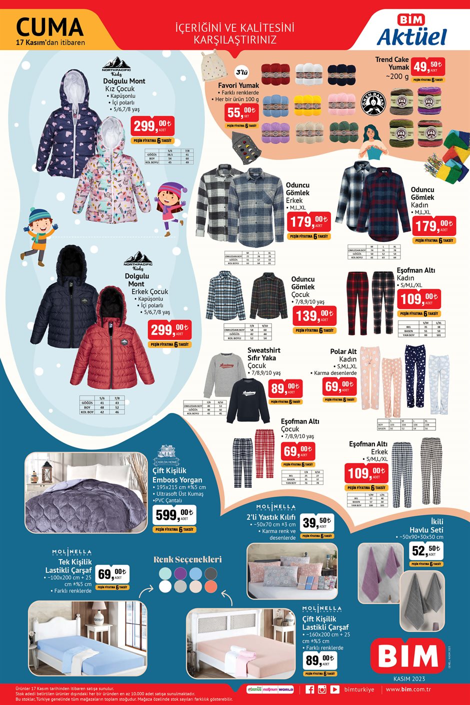 BİM'in indirimli aktüel ürünler kataloğu paylaşıldı. Bu kapsamda BİM kataloğunda kız/erkek çocuk mont 299 TL, kase 11 TL, fanlı ısıtıcı 329 TL fiyatıyla satışa çıktı.