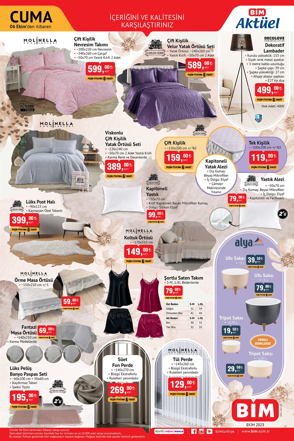 BİM bu haftanın indirimli aktüel ürünlerini yayımladı. 6 Ekim tarihi itibarıyla başlayacak indirimler arasında pek çok ürün yer alacak. BİM kataloğunda HP7N4W2AA Notebook, Premium Ütü Masası, Arnica Blender Seti, Kumtel Beyaz Cam Ankastre Set ve Kütahya Porselen Altın File Rölfeyli 49 Parça Yemek Takımı dikkat çekti. İşte BİM 6 Ekim 2023 aktüel ürünler kataloğu fiyat listesi...