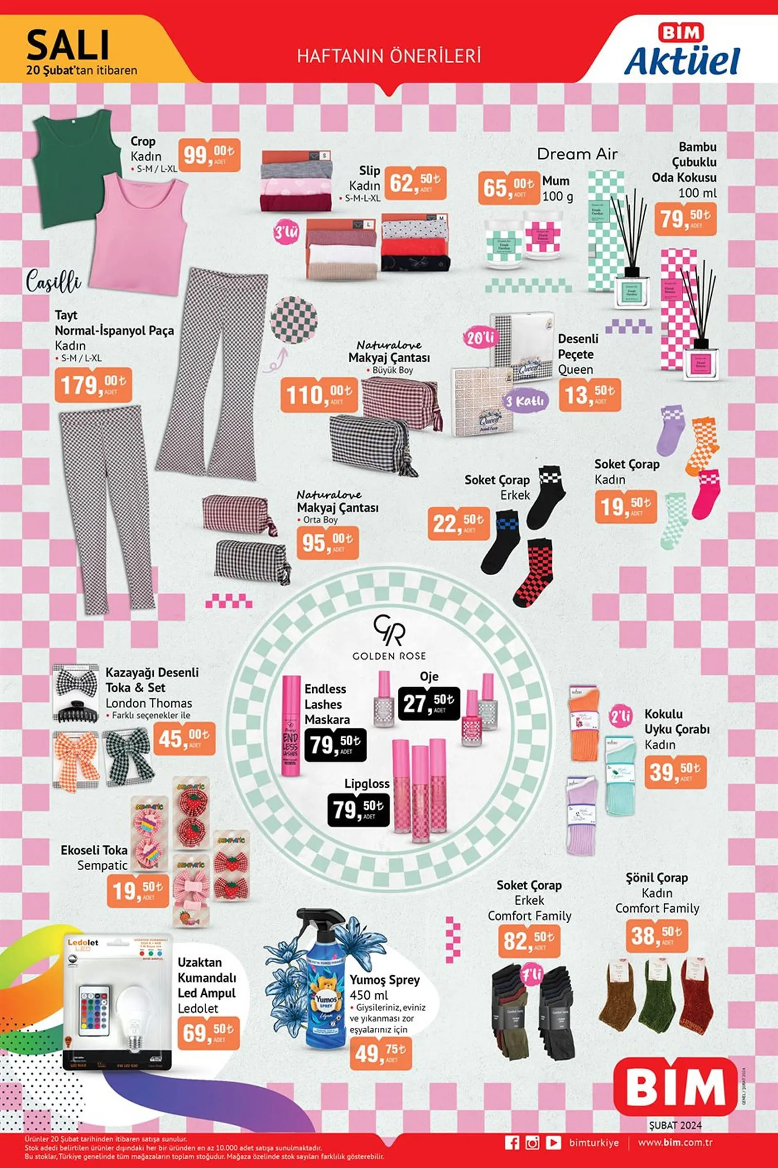 BİM 20 Şubat 2024 aktüel kampanya kataloğu açıklandı. BİM Market mağazalarında 20 Şubat ile 27 Şubat 2024 tarihleri arasında geçerli olacak kampanyada yer alacak fırsat ürünleri raflarda yerini almak için hazırlanıyor. İşte 20 Şubat 2024 Salı gününden itibaren BİM'de satışa sunulacak fırsat ürünleri...