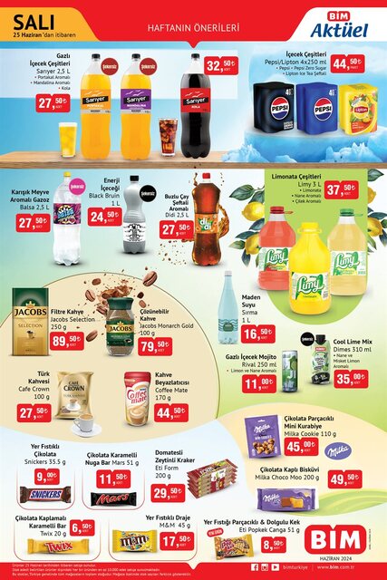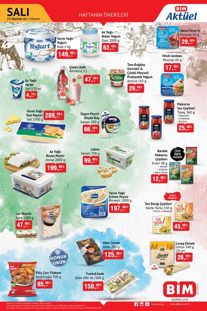 BİM aktüel indirimli ürünler kataloğunu internet sayfası üzerinden paylaştı. BİM 25 Haziran 2024 kataloğunda bu hafta çeşitli gıda ürünleri yer alıyor. BİM'de yarın birbirinden farklı ürünler raflarda yerini alacak.