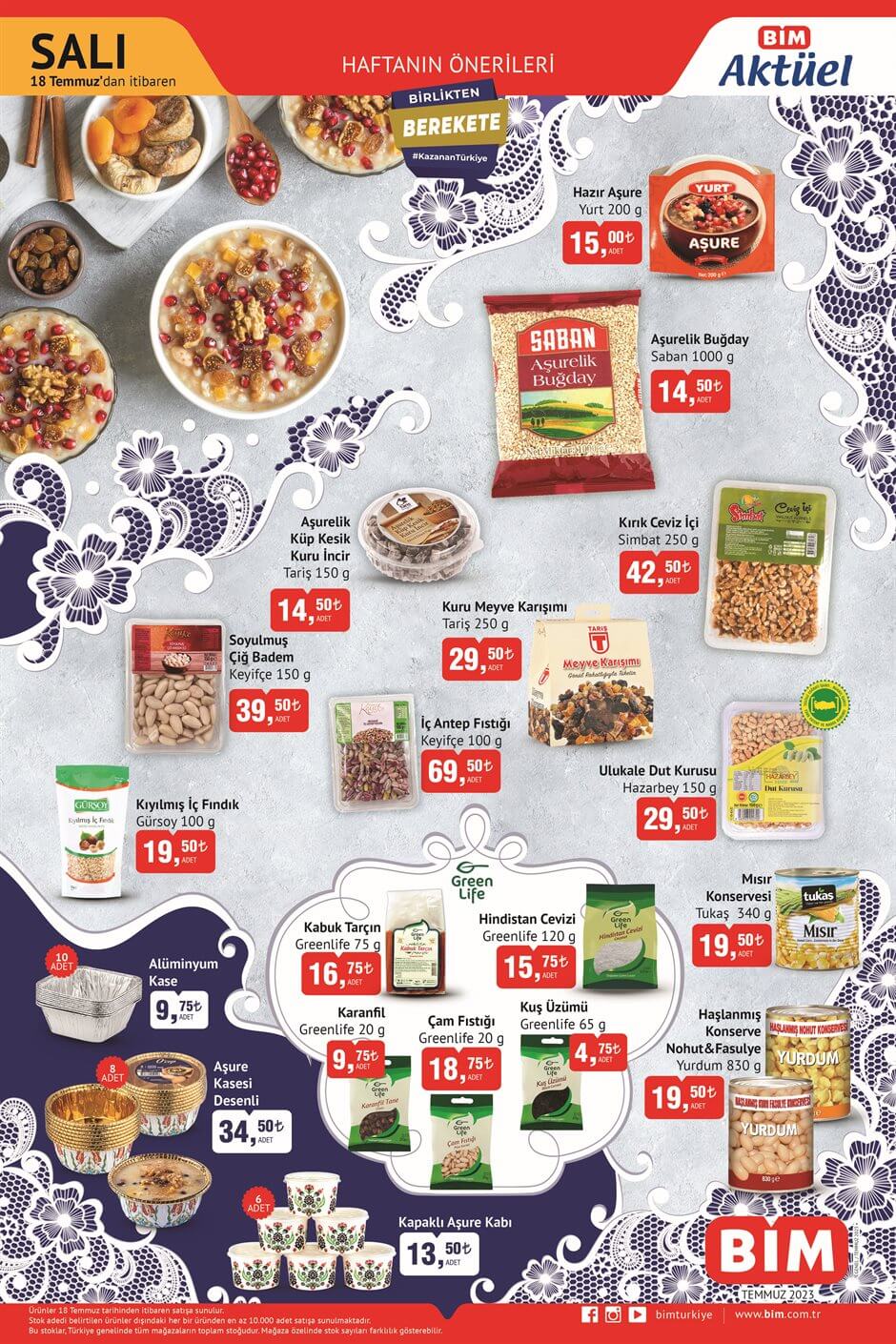 BİM'in 18 Temmuz aktüel ürünleri yayımlandı. Her hafta BİM tarafından yayımlanan aktüel ürünler tüketicilerin yoğun ilgisiyle karşılaşıyor. Bu kapsamda bu hafta BİM'de kişisel bakım, temizlik ürünleri ve aşurelik malzemeler yer aldı. Peki, BİM aktüel ürünlerin fiyatı ne kadar, kaç TL? İşte detaylar...