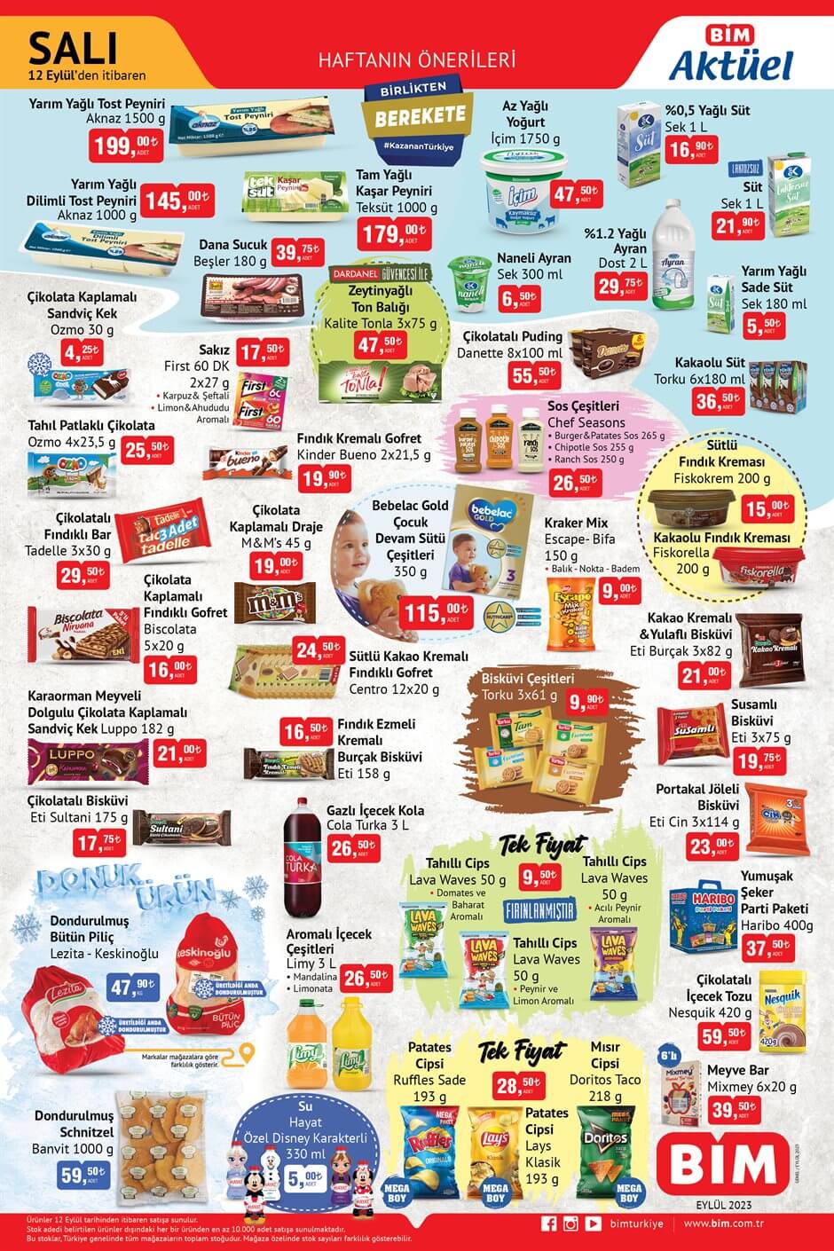 BİM'in 12 Eylül 2023 aktüel ürünler kataloğu yayımlandı. Katalogda temel gıda ve temel ihtiyaç ürünleri yer aldı. İşte yeni aktüel ürünler kataloğu ve fiyat listesi...