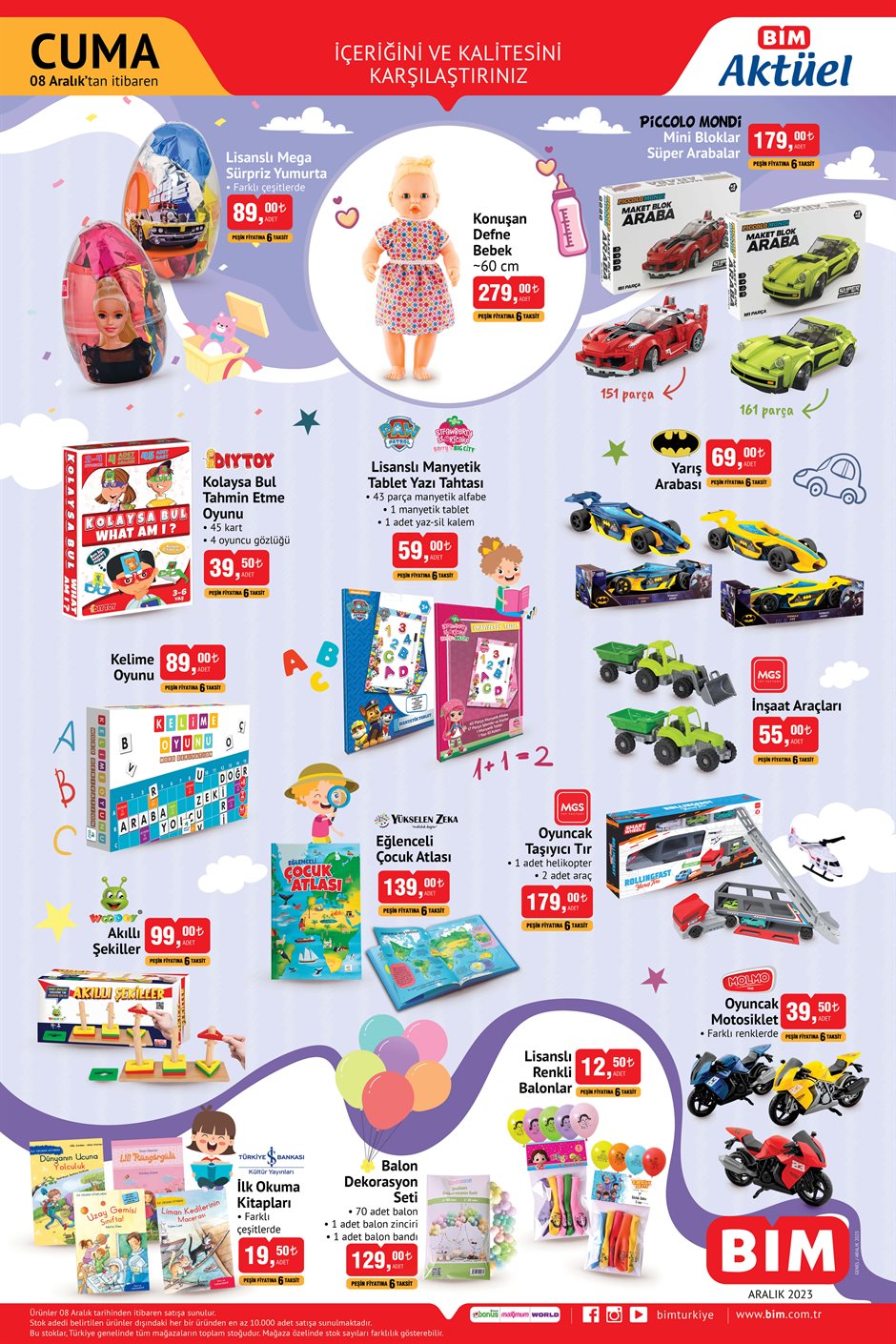 BİM'in 8 Aralık 2023 tarihli aktüel ürünler kataloğu yayımlandı. Katalogda Alfa Romeo R1 Katlanabilir Elektrikli Bisiklet ve Benante 12 parça kahvaltı seti dikkat çekti. İşte BİM aktüel ürünler kataloğu fiyat listesi...