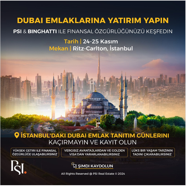 'Dubai emlaklarına yatırım yapın' başlığı ile tanıtılan topantı 24-25 Kasım tatihlerinde saat 11:00-21:00 arasında The Ritz-Carlton Istanbul'da yapılacak.
