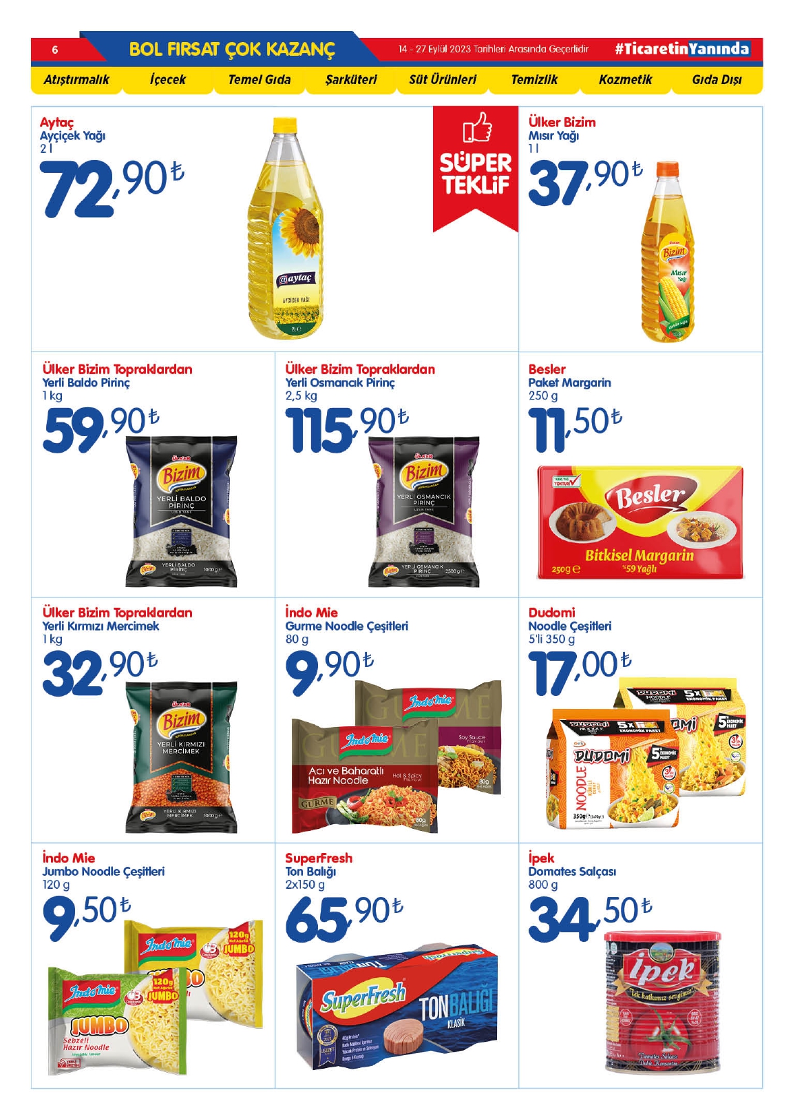 Türkiye’de pek çok il ve ilçede şubesi bulunan Bizim Toptan, 27 Eylül’e kadar devam edecek indirim kampanyası başlattı. Buna göre, Bizim Toptan’da, kadınbudu köfteden çamaşır deterjanına, tıraş köpüğünden üzüm ve elma sirkesine kadar pek çok ürün indirime girdi.
