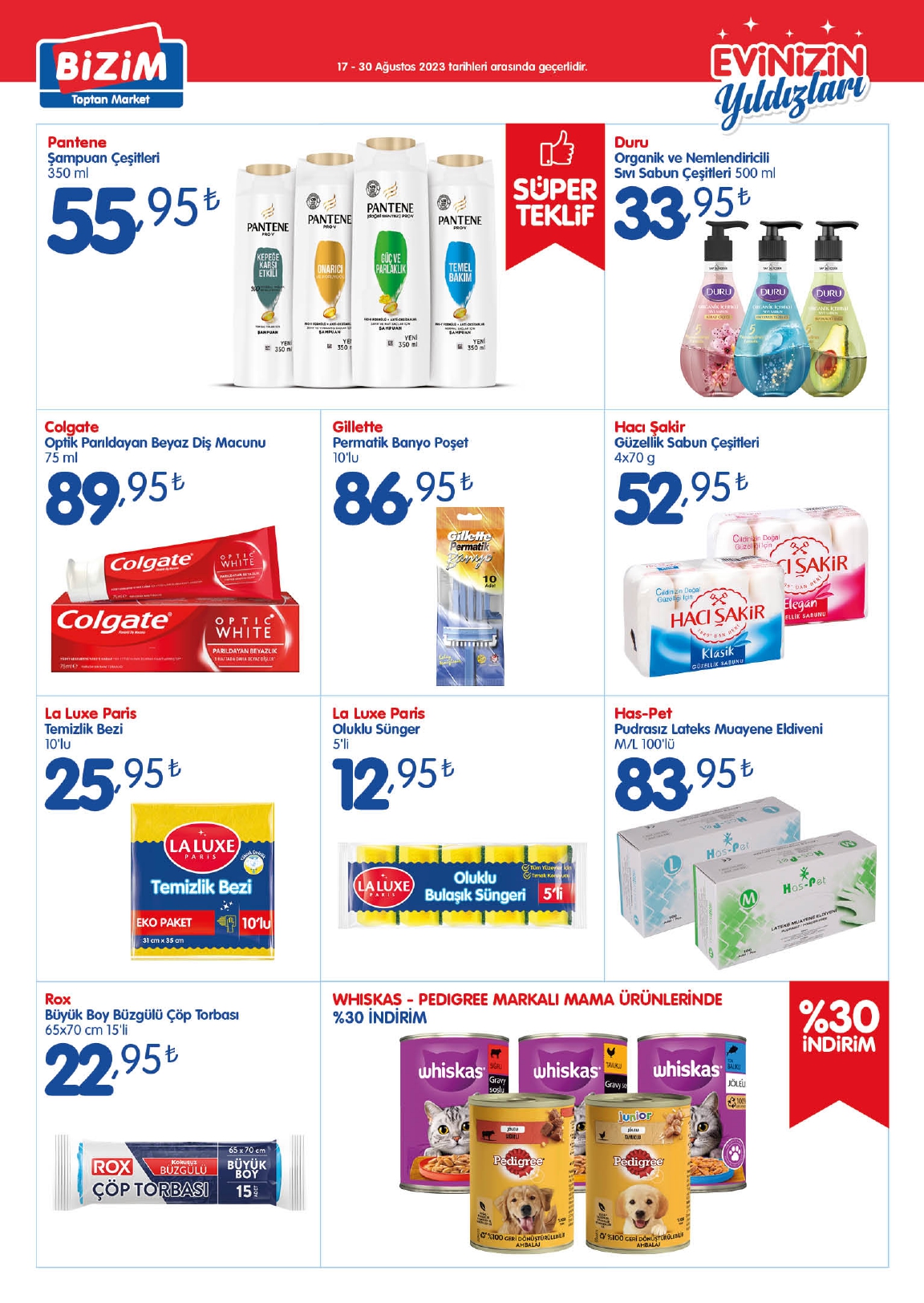 A’dan Z’ye hemen her ürüne indirim uygulayan Bizim Toptan, indirimlerin 27 Eylül’e kadar devam edeceğini açıkladı. Buna göre, Bizim Toptan’da, ekşili sosta leblebi kremasına, çamaşır deterjanından kâğıt havluya kadar pek çok ürün indirime girdi.