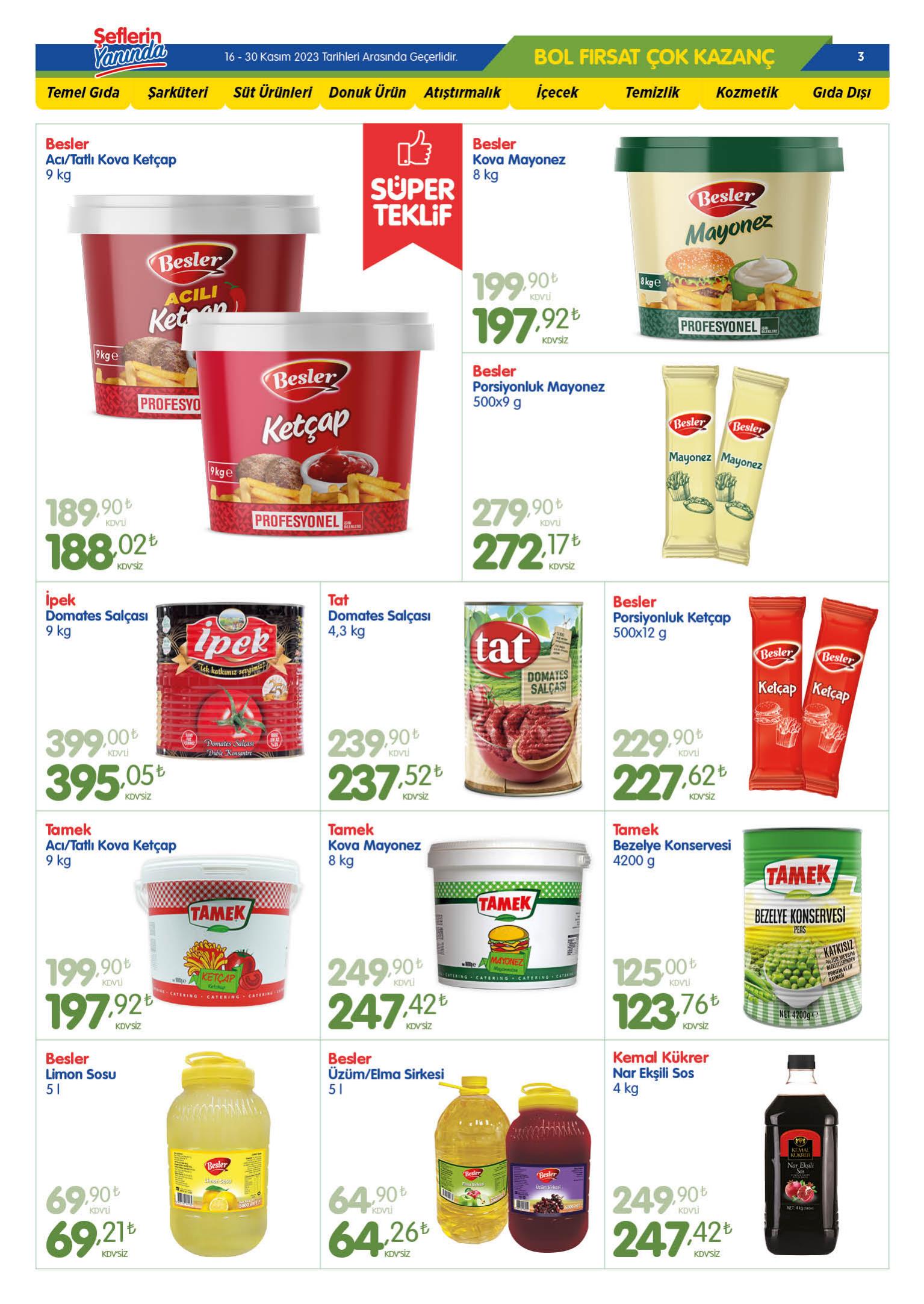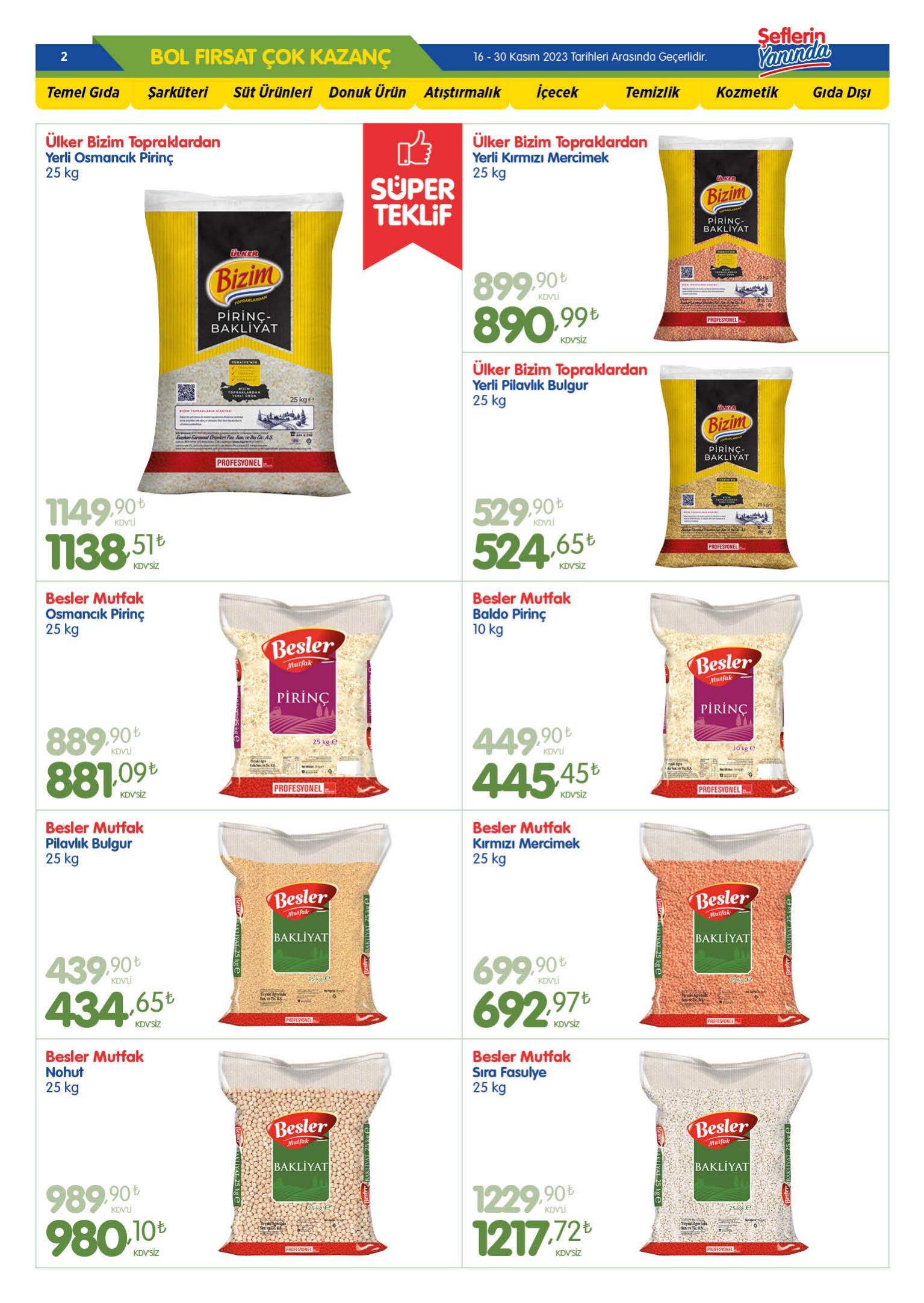 Yeni haftaya fırtına gibi indirimlerle giren Bizim Toptan, yine A’dan Z’ye hemen her ürüne indirim uyguladı. Buna göre, Bizim Toptan’da, pirinçten dönere, fasulyeden salama kadar pek çok ürün indirime girdi.