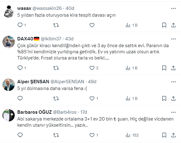 Emsal kira en az 40 bin liradir su an. Hatta daha fazladir.