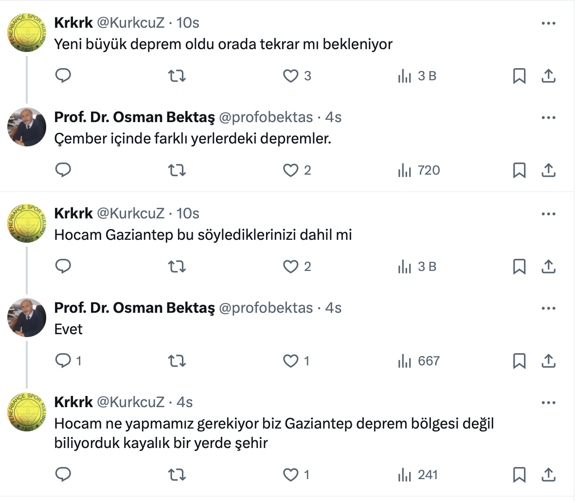 Deprem uzmanı Prof. Dr. Osman Bektaş'ın paylaşımı şu şekilde:
