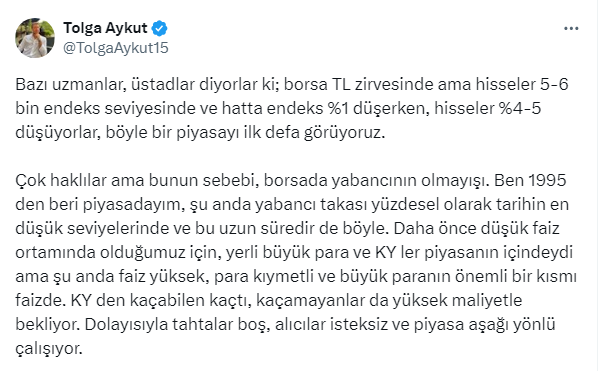 Borsa ne zaman yükselecek? Ekonomist Tolga Aykut, “Piyasa bitmedi” diyerek açıkladı