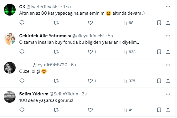 "Altının en az 80 kat yapacağına eminim, altında devam"