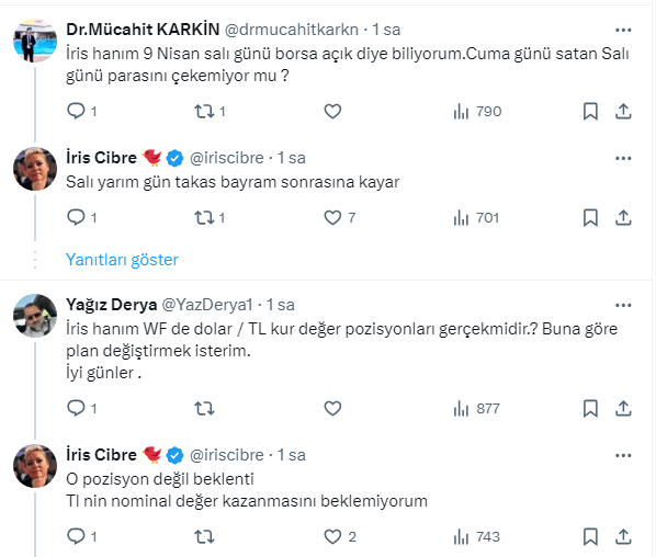 Ekonomist İris Cibre X sosyal medya hesabından borsa yatırımcılarını yarın ve cuma günü için uyardı. İşte dikkat etmeniz gerekenler...
