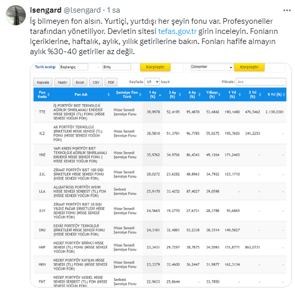 lsengard @lsengard: İş bilmeyen fon alsın. Yurtiçi, yurtdışı her şeyin fonu var. Profesyoneller tarafından yönetiliyor. Devletin sitesi http://tefas.gov.tr girin inceleyin. Fonların içeriklerine, haftalık, aylık, yıllık getirilerine bakın. Fonları hafife almayın aylık %30-40 getiriler az değil.