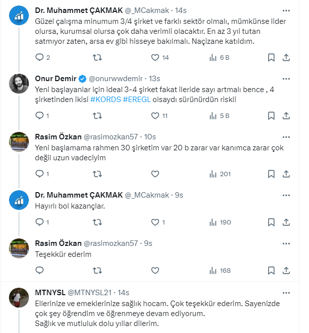 "Yeni başlayanlar için ideal 3-4 şirket fakat ileride sayı artmalı bence, 4 şirketten ikisi #KORDS #EREGL olsaydı sürünürdün riskli."