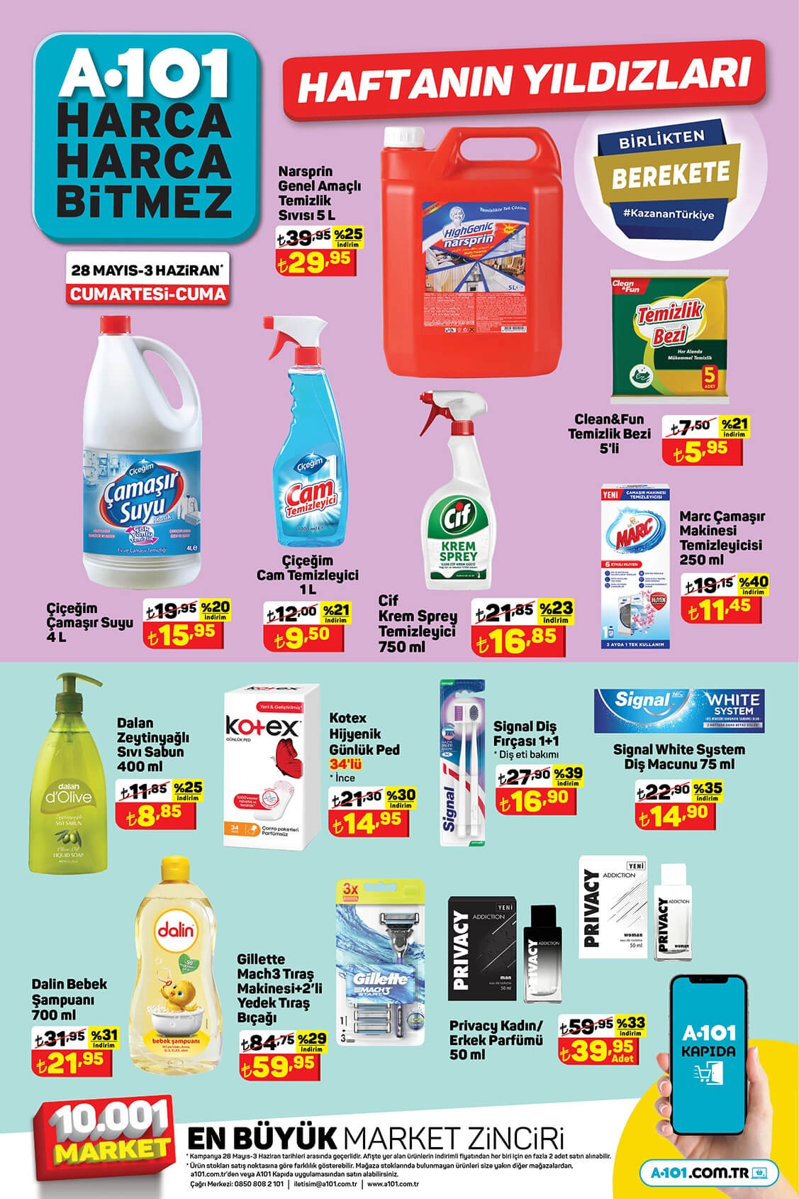 A101'in büyük indirim yaptığı 28 Mayıs 3 Haziran 2022 tarihleri arasında geçerli aktüel ürünler kataloğunun ürünleri ve fiyatları belli oldu. A101 Haftanın Yıldızı olarak seçtiği aktüel ürünlerin kataloğunda seçili pek çok ürüne indirim yaptı. 3 sayfa olarak paylaşılan kataloğunda; temel gıda ürünleri, temizlik malzemeleri ve birçok ürün yer aldı. Peki, A101'deki aktüel ürünlerin fiyatı ne oldu? İşte A101 aktüel ürünler kataloğu 31 Mayıs 2022 fiyat listesi...