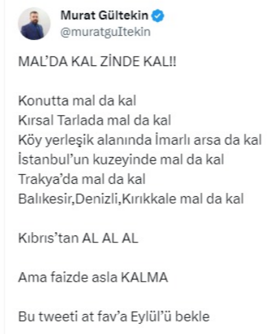 İŞTE GÜLTEKİN’İN O PAYLAŞIMI
