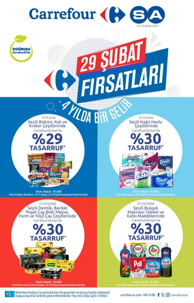 CarrefourSA 22-29 Şubat güncel ürünlerin yer aldığı aktüel kataloğu internet üzerinden yayımlandı. CarrefourSA'da birçok seçili üründe indirim fırsatı sunuluyor. Kağıt havludan, beyaz eşyaya, kişisel bakım ürünlerine kadar seçili ürünlerde fırsat sizleri bekliyor.