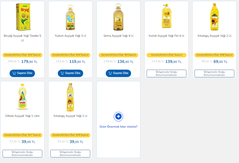 CARREFOURSA AYÇİÇEK YAĞI FİYAT LİSTESİ