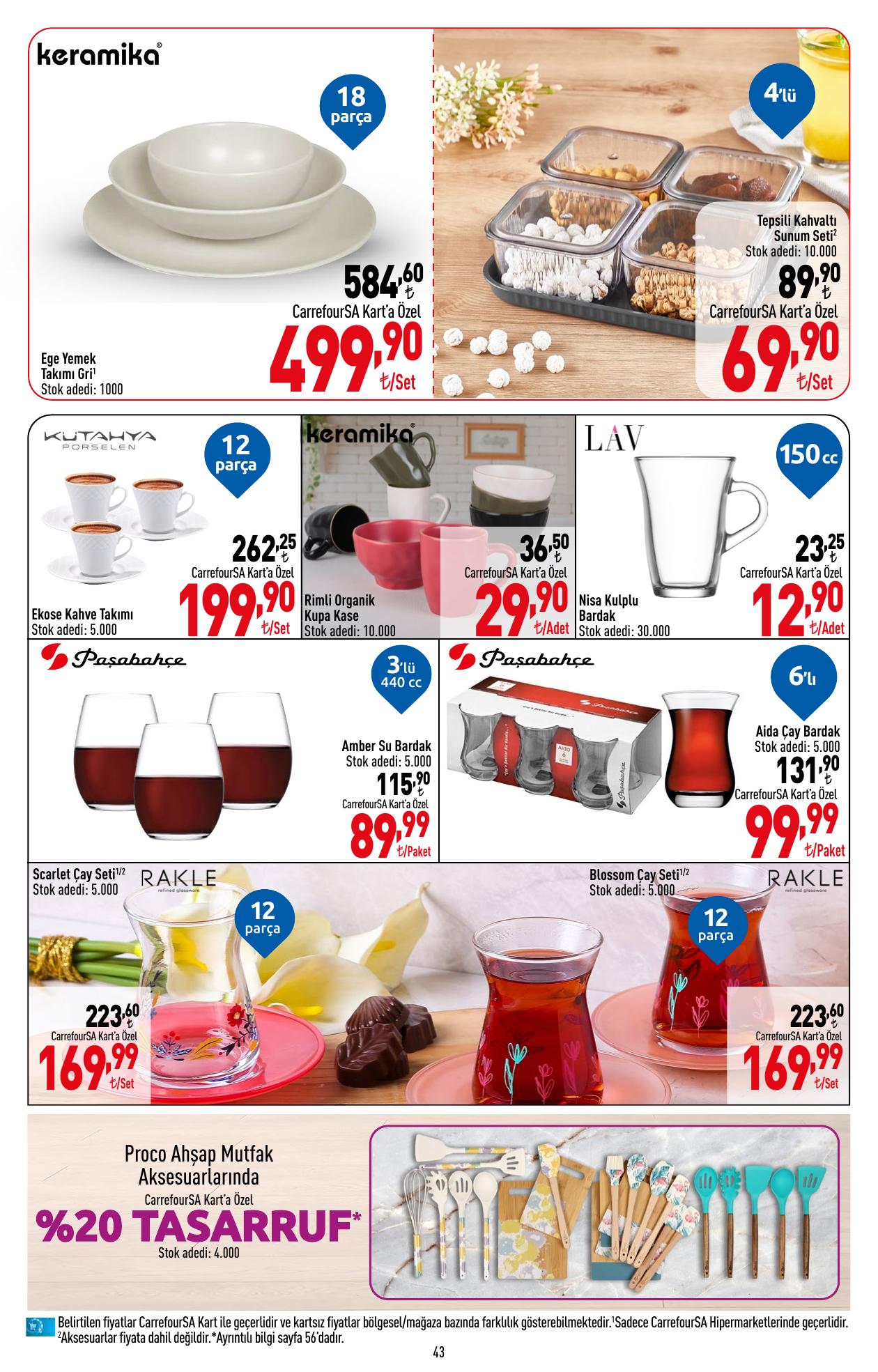 Büyük indirim kampanyası düzenleyen CarrefourSA’dan bu kampanyanın 15 Kasım’da sona ereceğini açıkladı. Carrefour’da 18 parça yemek takımı 499,90 TL’ye, 12 parça kahve takımı 199,90 TL’ye düştü. İşte CarrefourSA 14 Kasım 2023 fiyat listesi...