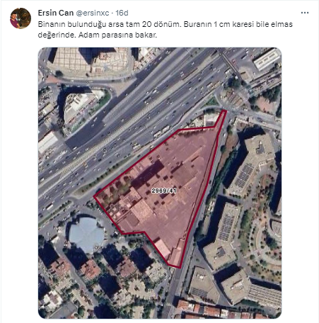 "Binanın bulunduğu arsa tam 20 dönüm. Buranın 1 cm karesi bile elmas değerinde. Adam parasına bakar."