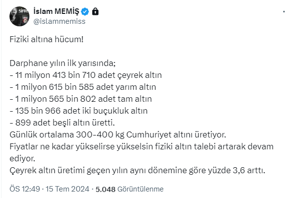 Darphane altın basmaya yetişemiyor! Yatırımcılar fiziki altına hücum ediyor! İslam Memiş'ten son dakika altın yorumu!