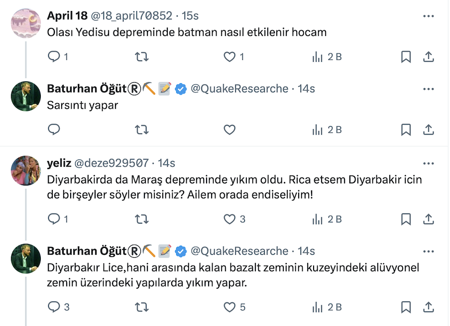 Deprem araştırmacısı Baturhan Öğüt'ün paylaşımına şu yorumlar geldi: