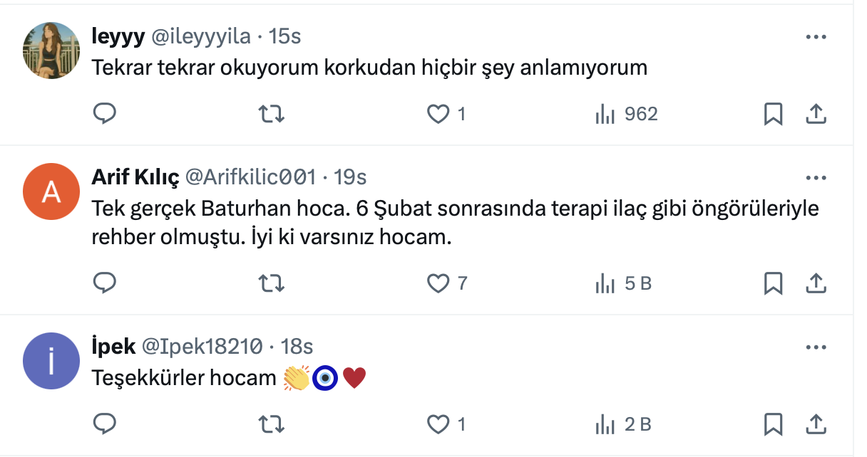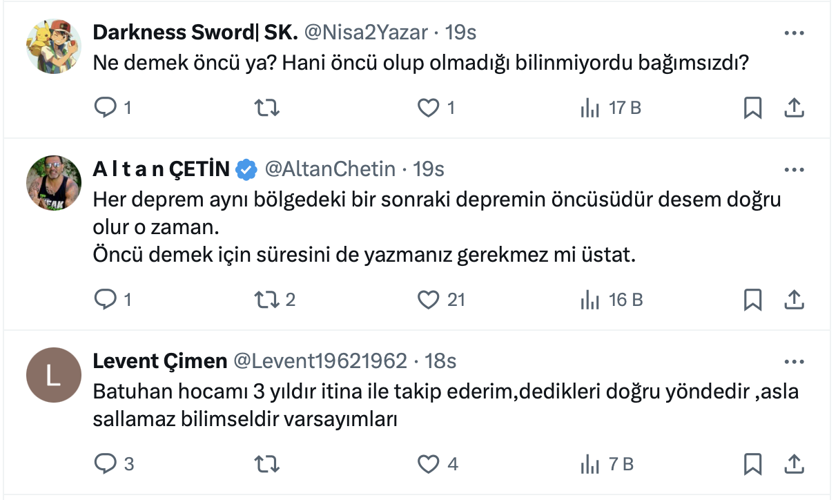 Deprem araştırmacısı Baturhan Öğüt’ün paylaşımına şu yorumlar geldi: