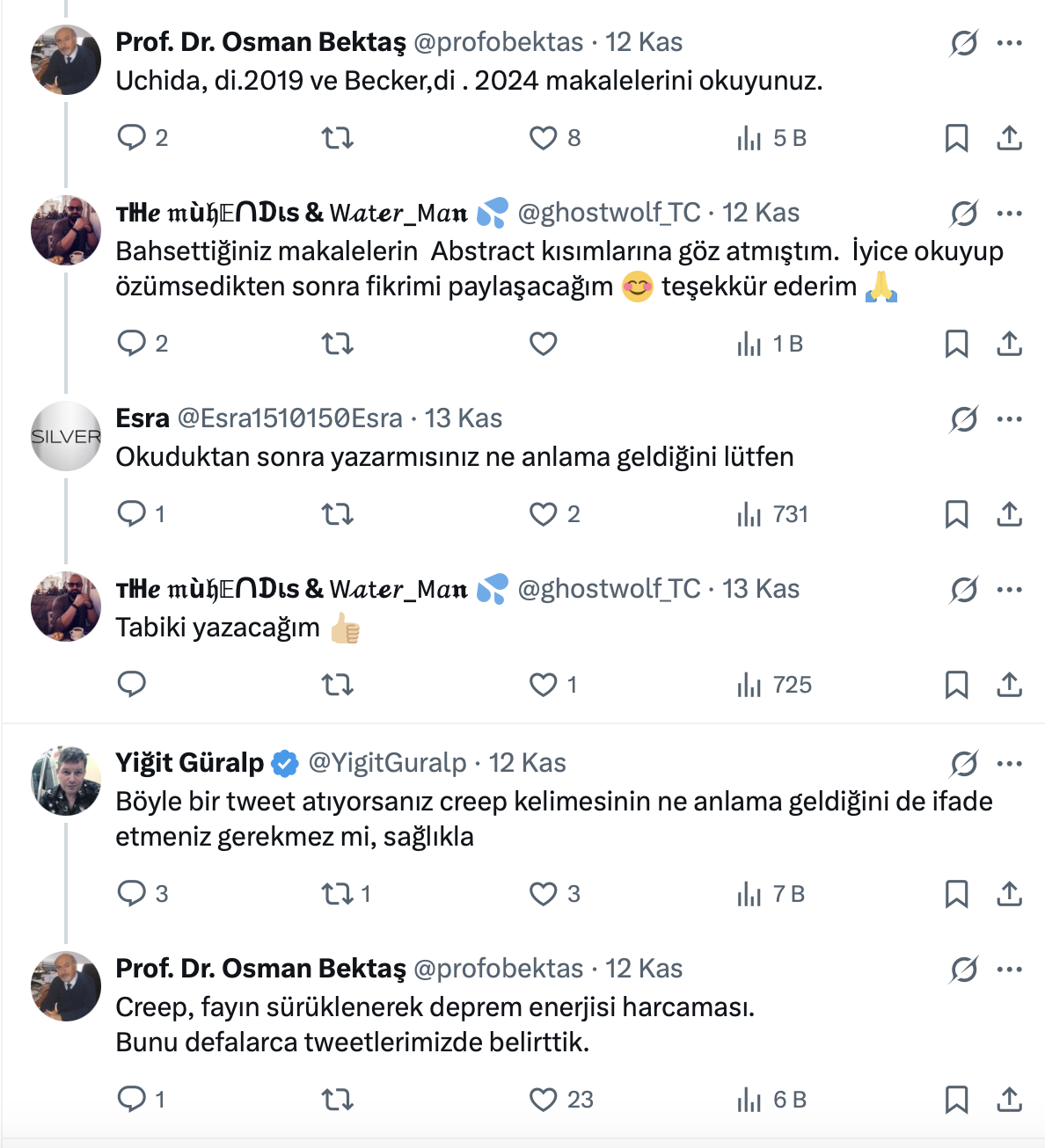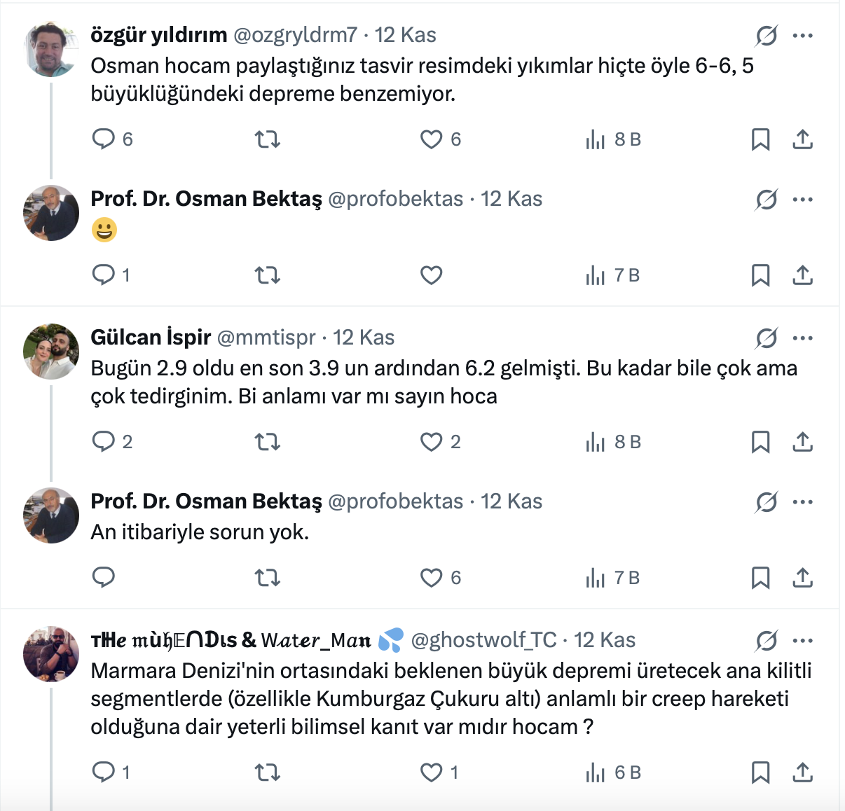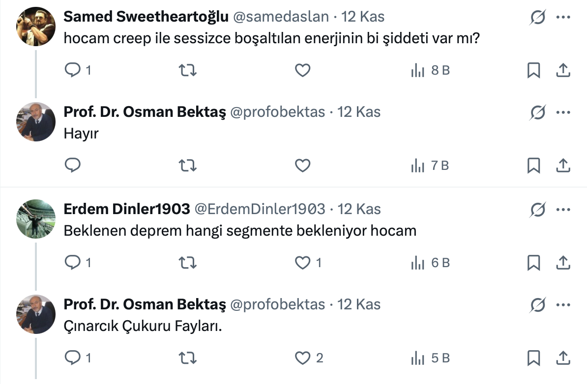 Deprem bilimci Prof. Dr. Osman Bektaş’ın paylaşımı şu şekilde:
